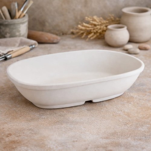 El tamaño es perfecto para crear piezas utilitarias como bandejas para servir, organizadores o elementos decorativos. Su superficie lisa facilita la aplicación de color y detalles, logrando acabados prolijos después de la cocción.