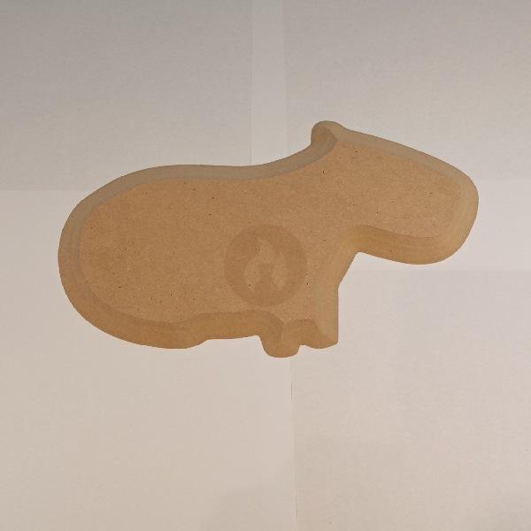 Contramolde de fibrofácil con forma de Capibara. Medidas aprox.: 29 cm x 18,5 cm. Ideal para piezas cerámicas decorativas y temáticas.